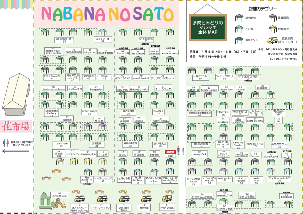 2024年4月5日(金)、6日(土)、7日(日)になばなの里主催、多肉とみどりのマルシェ実行委員会協力の第8回 多肉とみどりのマルシェ in なばなの里が開催されます。出店数は全部で95店ですね。hapibellも出店します。公式のページはこちらです。