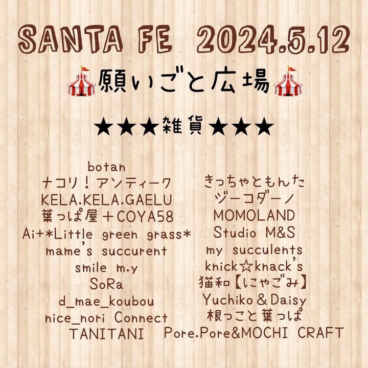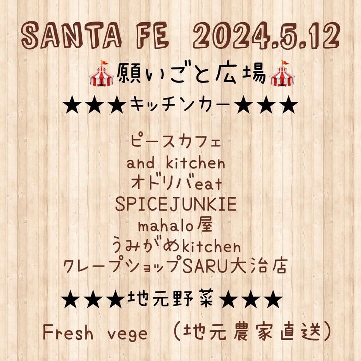 2024年5月12日に愛知県安城市 アンフォーレ願いごと広場で GREEN SANTAさん 主催の第13回 SANTA FE in アンフォーレ 願いごと広場が開催されます。hapibellも出店します。
